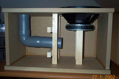 Im Herbst 2001 begannen wir die Konstruktion eines HiFi-Woofers unter Ausnutzung der Raumakustik. Die Berechnungen wurden mit dem Programm "LSP-CAD" vorgenommen. Schließlich war die Simulation beendet und wir hatten eine Lösung deren Frequenzgang linear bis 20 Hz hinunter lief! So wurde der Woofer aufgebaut und getestet. Das Ergebnis war zwiespältig. Zwar war der Woofer nicht so linear wie erhofft, dafür gab er Frequenzen bis 20 Hz, mit hohen Pegel wieder. Schließlich wurde der Frequenzgang am Hörplatz mit einen Equalizer linearisiert. Die Konstruktion erwies sich in Wohnräumen als herausragende Lösung mit großen Potential.